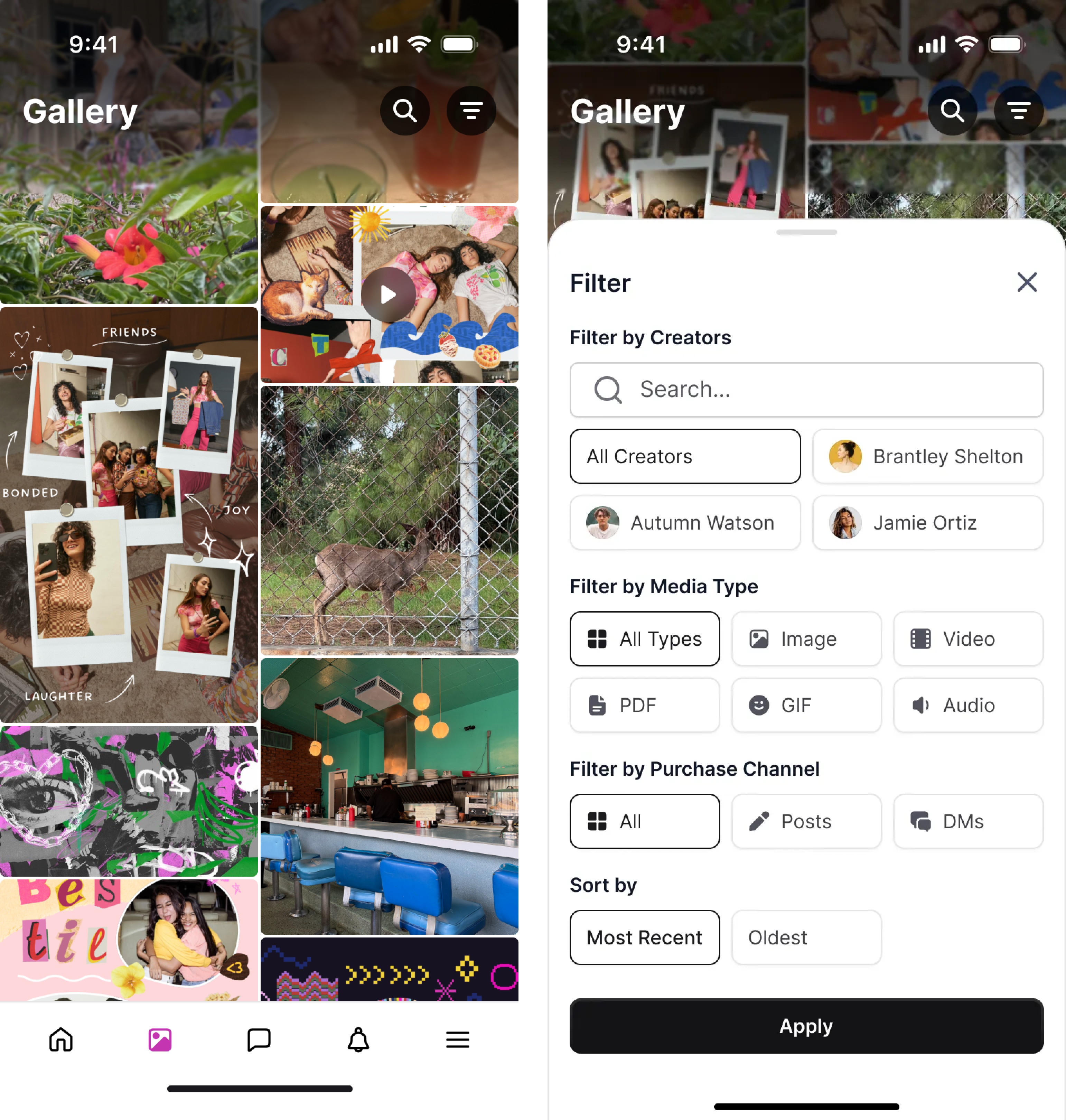 We're excited to introduce our redesigned Gallery experience, making it easier than ever for fans to explore and organize their purchased content. Whether you're looking for a specific creator's content or want to browse by media type, the new Gallery puts powerful search and filtering tools right at your fingers.